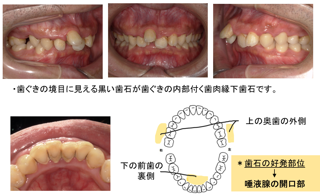 カウンセリング・診断結果 口腔内を拝見したところ 全体的に歯ぐきの発赤、腫脹、出血があり炎症が強く出ていました。歯ぐきの上だけでなく、歯ぐきの内部にも歯石が認められる状態でした。